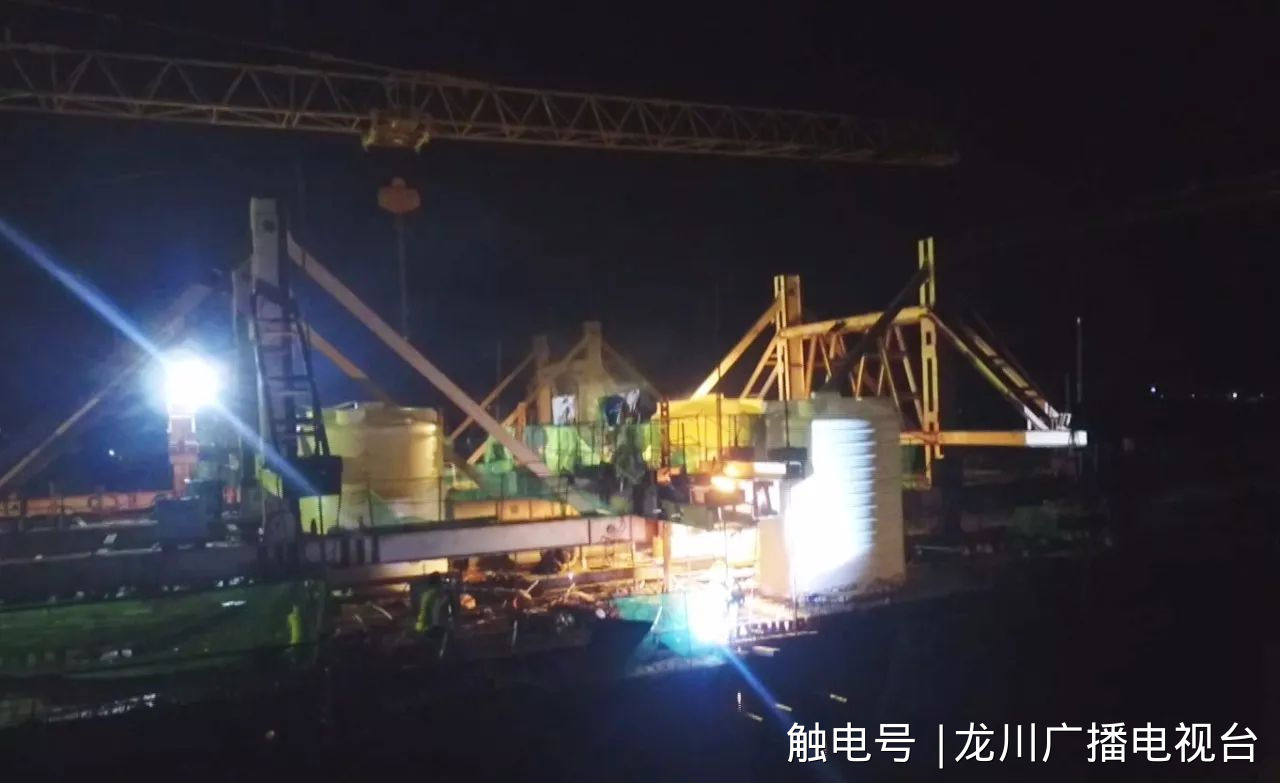 经过工人们一夜的奋战,东江大桥左幅桥于凌晨5点合龙。
