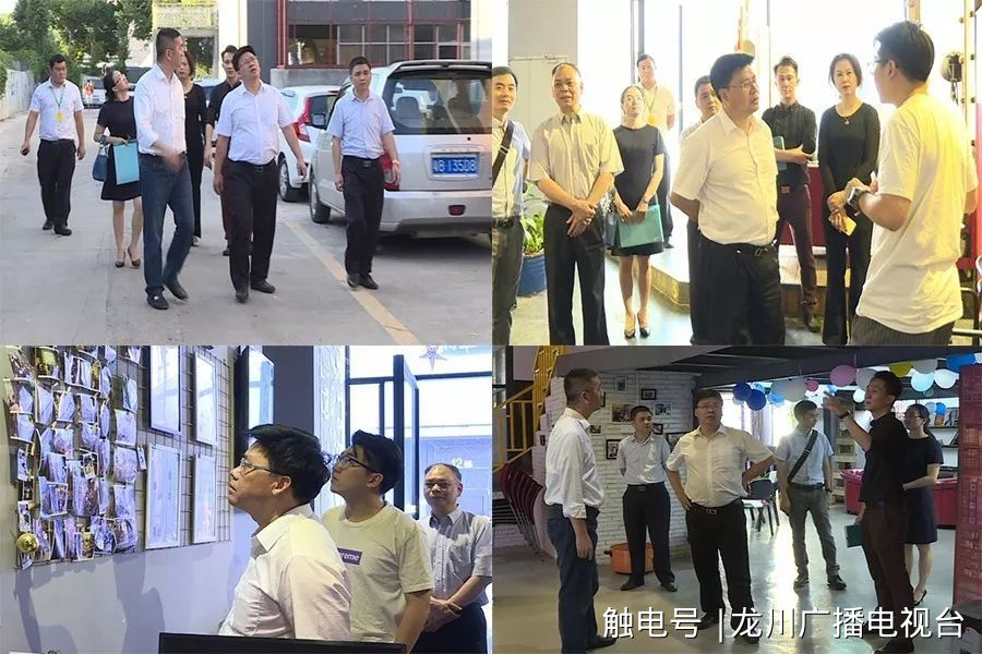 ▲在大学城创客小镇,县委书记黄添胜在深圳市四方网盈孵化器管理有限公司相关负责人的陪同下,详细了解了创客小镇运营、企业服务、投融资管理等相关情况。