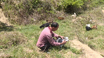 △贫困户刘仕辉悉心地照料着落在羊群后面的幼小的羊宝宝。