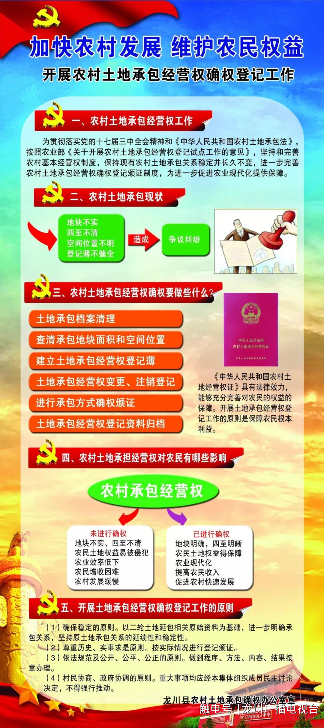 相信在县委、县政府的正确领导下,广大农民朋友的积极支持和热情参与,龙川农村土地承包经营权确权登记颁证工作一定能够取得圆满成功,为全面落实农村土地承包经营权,推进我县农业增效、农民增收、农村繁荣及推进城乡统筹一体化发展奠定坚实的基础。