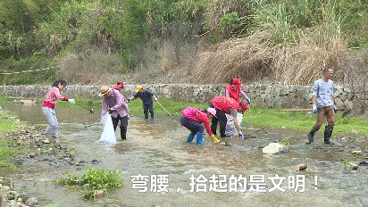 党的十九大指出,建设生态文明是中华民族永续发展的千年大计,把生态文明建设和生态环境保护提升到前所未有的高度。 参与此次活动的志愿者,用一次又一次的弯腰、抬手,成为党的十九大精神的践行者和宣传员。