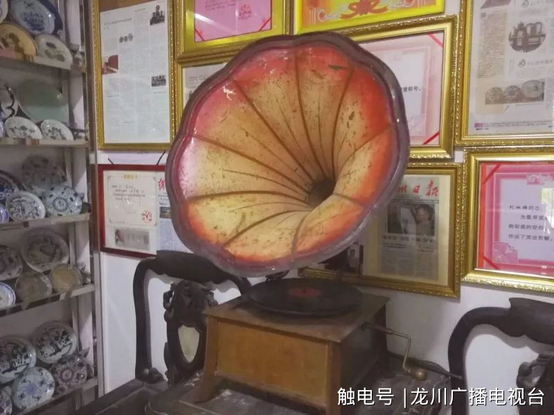 他还有一个 “龙川保存最完好的留声机”,这件清末民初的藏品至今还能播放民国时期的唱片。