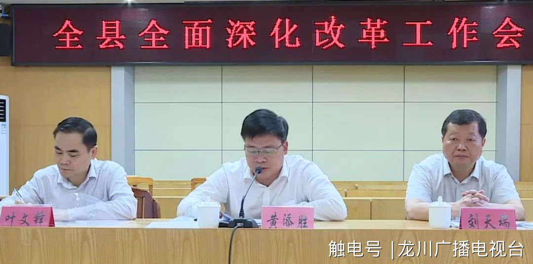 黄添胜要求,要持续聚焦龙川发展的短板,不断推进关键领域和关键环节改革取得实质性成果;要深化政务服务改革工作,以“只进一次门、最多跑一次”为目标,聚焦企业反映的“痛点”“难点”“堵点”,加快营商环境综合改革,着力打造市场化、法治化、国际化、便利化的营商环境;要努力夯实责任,以高度负责、敢于担当的态度更加务实地推进改革工作;要主动对接中央和省、市机构改革等重大部署,强化县委对改革的研究谋划、统筹布局、综合协调、整体推进,推动内部职责和业务整合,完善科学领导和决策、有效管理和执行的体制机制,不断提高领导、谋划、推动改革的能力水平。