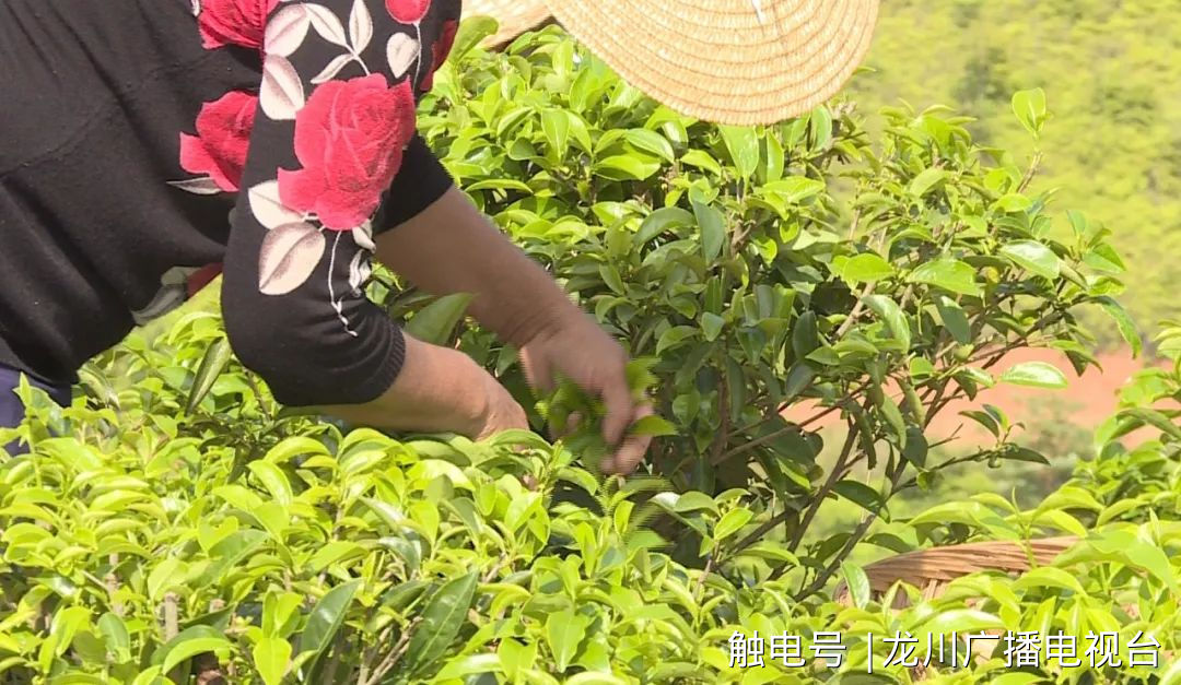 茶园里,20多名茶农正在采摘茶叶,茶农娴熟地用食指与姆指夹住叶间幼梗的中部,借两指的弹力将茶叶摘断,一片片嫩绿的新叶被放入框中…