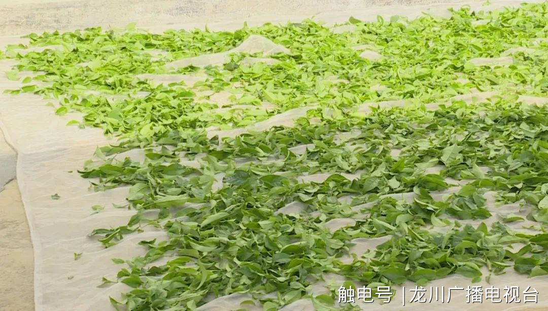 工作人员将采摘好的新叶进行晾晒,让茶叶有明显的太阳味。