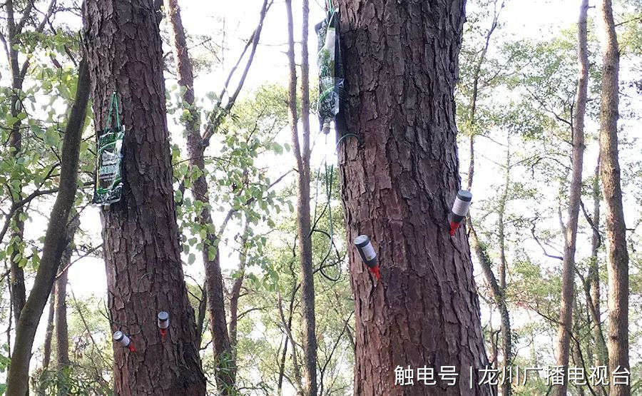 工作人员还在松树上挂设天牛诱捕器,分阶段有重点对松材线虫病进行综合治理,防止松材线虫病扩散,掐断传播媒介,保护松树。