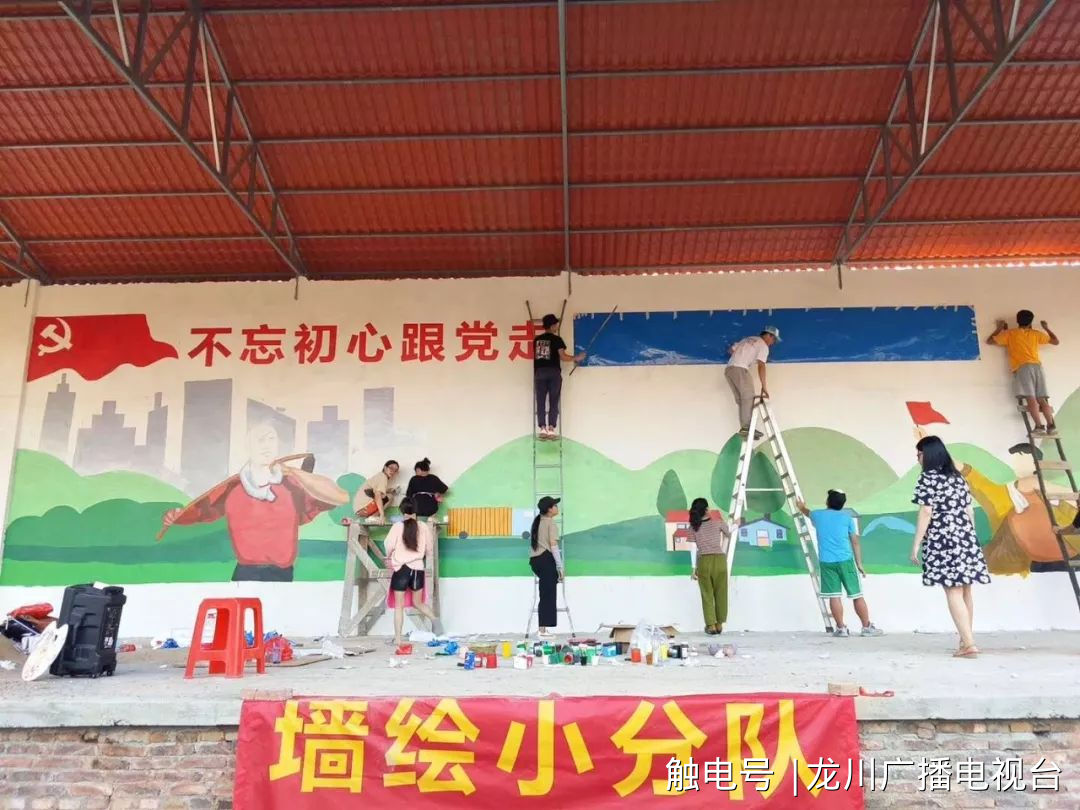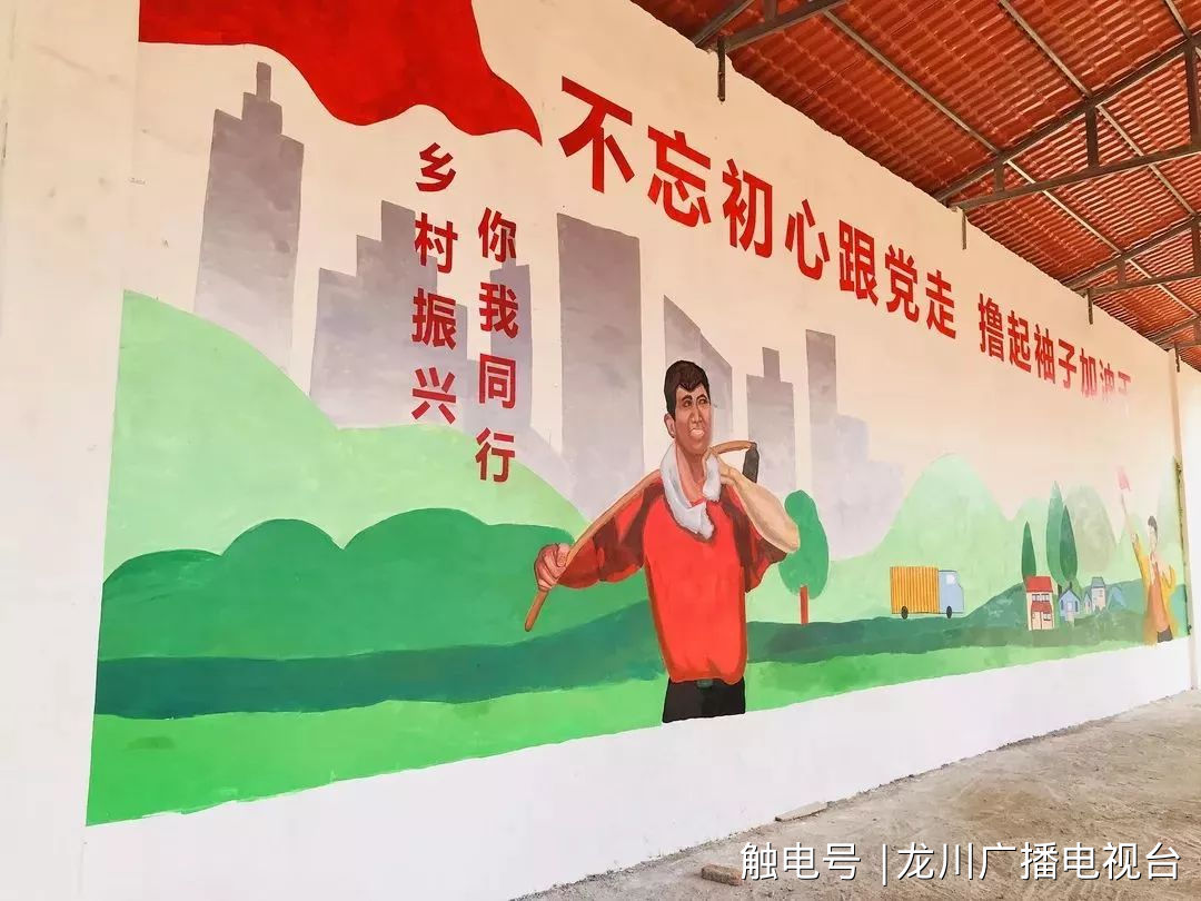 手绘墙绘出美丽乡村新画卷。在团县委和广轻工学院的共同策划下,墙绘小分队用三天时间在车田镇车田村绘出一幅“不忘初心跟党走,撸起袖子加油干”的墙绘,用实际行动参与车田镇美丽乡村建设。