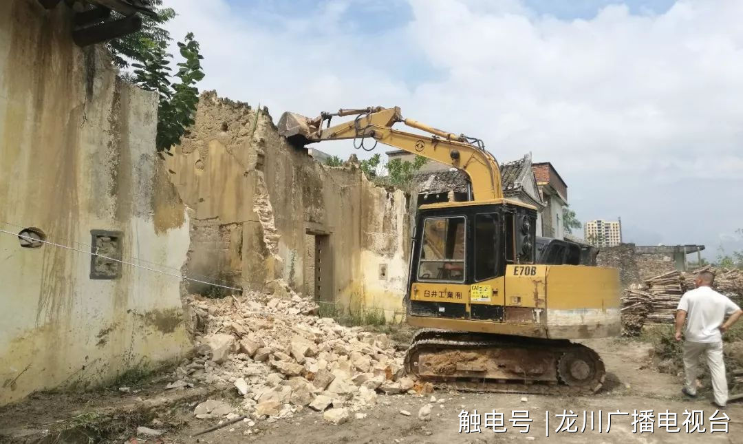 △登云镇天云村组织挖掘机拆除危旧房。