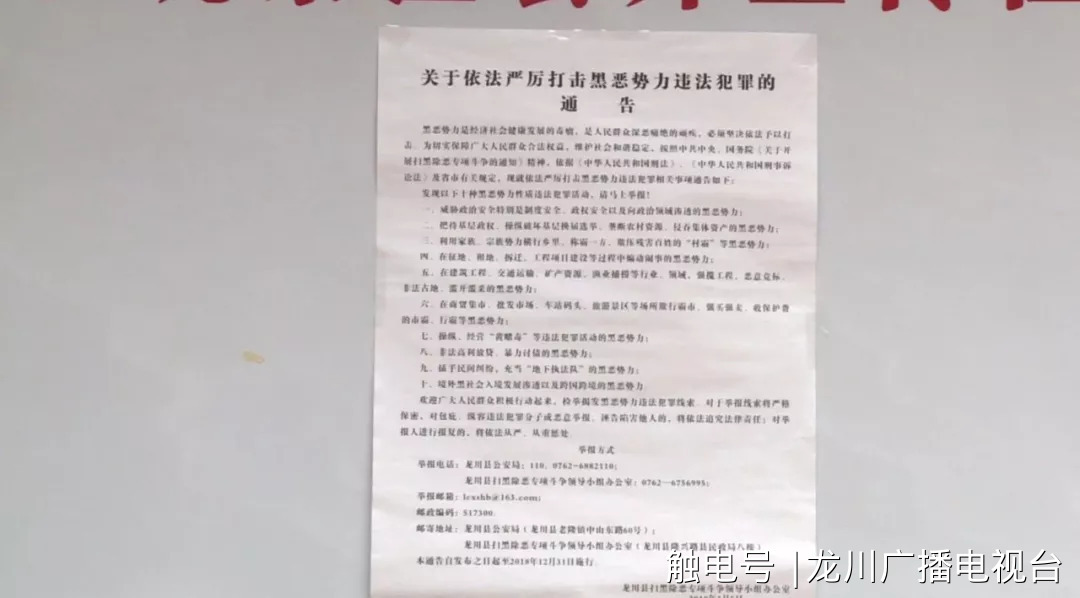 接下来,我们会使旅游行业或旅游系统都能够清楚,龙川自上而下在开展扫黑除恶活动,希望广大群众能积极举报黑势力的线索,为创造和美龙川做贡献。