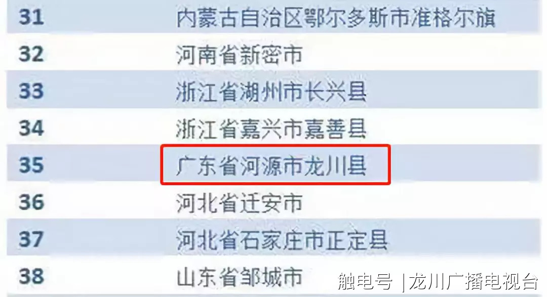 龙川县以第35名成功入选“中国营商环境百强区县”成为我市唯一入选区县。