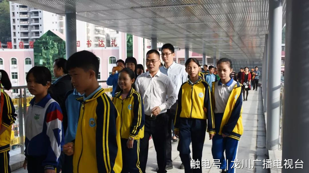 在人行天桥通行仪式现场,县委常委、统战部部长邓振中郑重宣布:培英学校人行天桥今日正式通行!