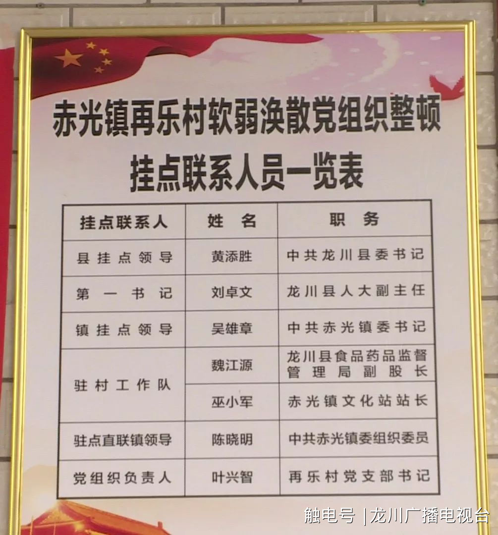 赤光镇再乐村全村总户数423户,共2635人,党员52人。因“两委”班子不齐、党组织生活不规范、村务财务党务不够透明、社会矛盾多等突出问题,在龙川开展的“六对接六查找”全面排查中,精准确定再乐村党支部为软弱涣散村党组织,由县委书记黄添胜挂点整顿,县人大常委会副主任刘卓文任再乐村第一书记指导开展整顿工作。经过三个月的大力整顿,该镇党委在9月17日前全部撤换和补选村“两委”干部,配齐配强村“两委”干部,让该村党组织凝聚力、战斗力进一步增强,展现出新的活力,极大提升了群众的满意度。