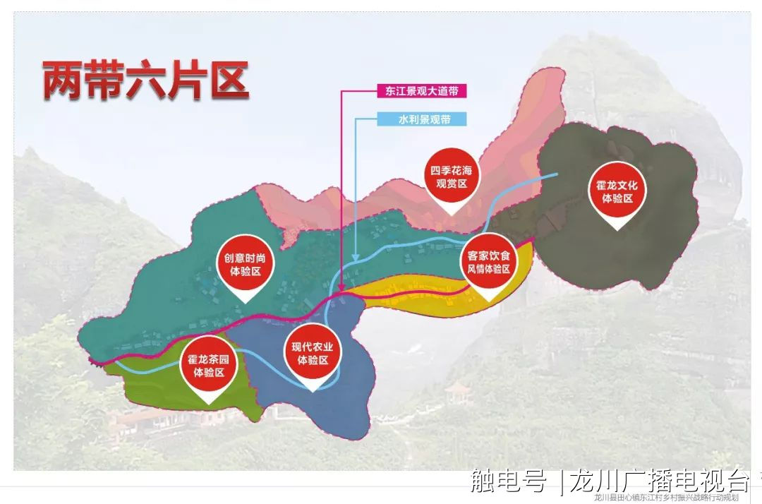 东江村地处田心镇东南部,紧邻国家AAA级霍山风景区,在深入实施乡村振兴战略中,田心镇党委政府引进企业参与东江村乡村振兴战略,注册成立了广东霍龙故里旅游科技有限公司,结合东江村的实际,深挖东江村历史文化,依托霍山风景区,以霍龙文化为魂,规划建设“两带六片区”。