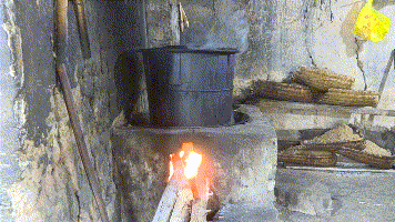 然后将碾压后的茶粉放到专用的大木桶上,用大火蒸,这个过程称为“蒸麸”。
