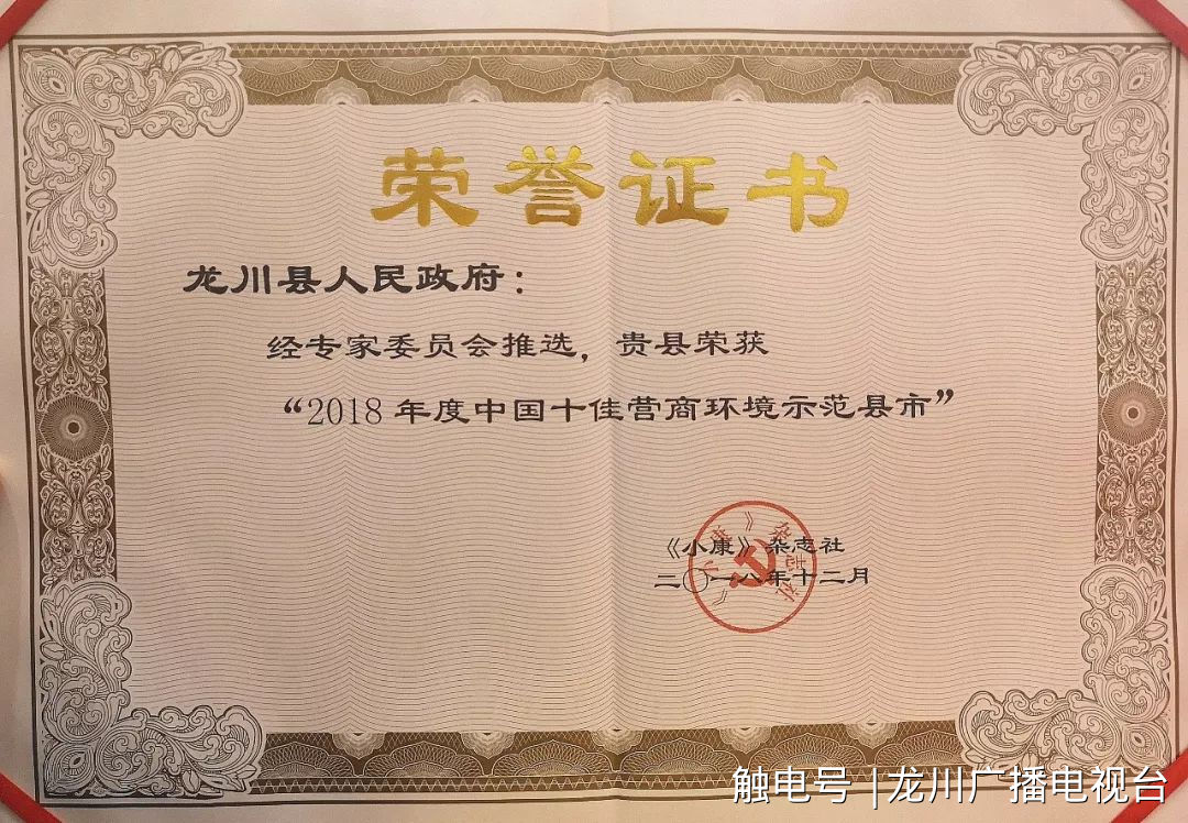 论坛会上,专家委员会授予龙川2018年度中国十佳营商环境示范城市(县市)荣誉称号,县长杨利华受邀出席并代表龙川接受大会授牌。