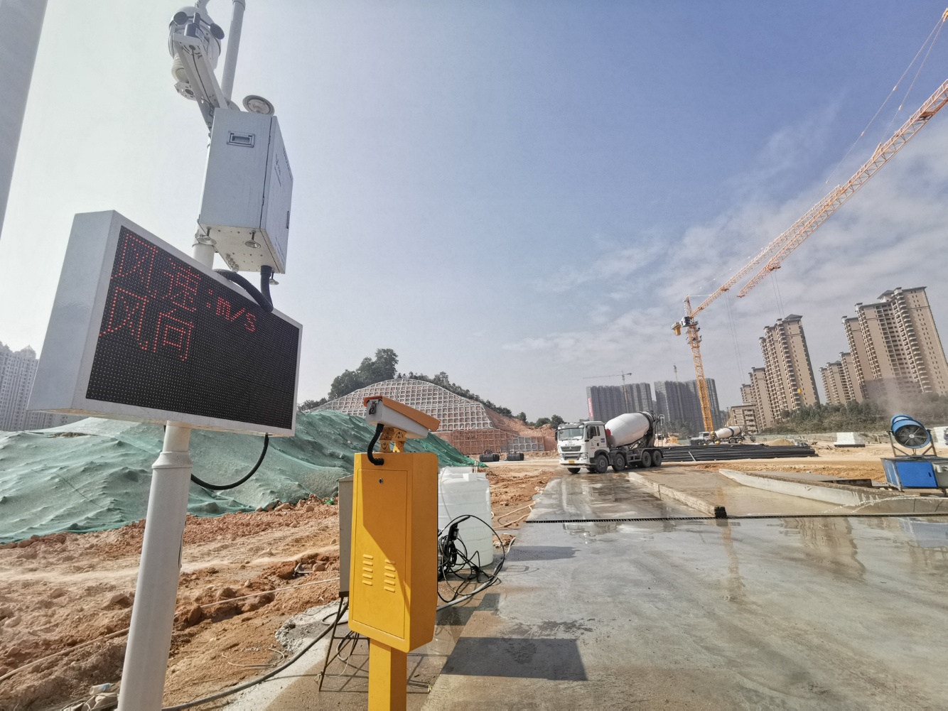 在县城东学校建设项目,记者看到,工地四周都设置了围挡,围挡上也同样安装了喷雾装置在不间断地喷雾。目前,施工现场的主要道路都已硬底化,工地外脚手架和裸露的场地、堆放的土方及建筑垃圾等都覆盖了绿网。此外,记者留意到,在工地的出入口处还安装了TPS在线监测设备,随时监测进出车辆的扬尘率。