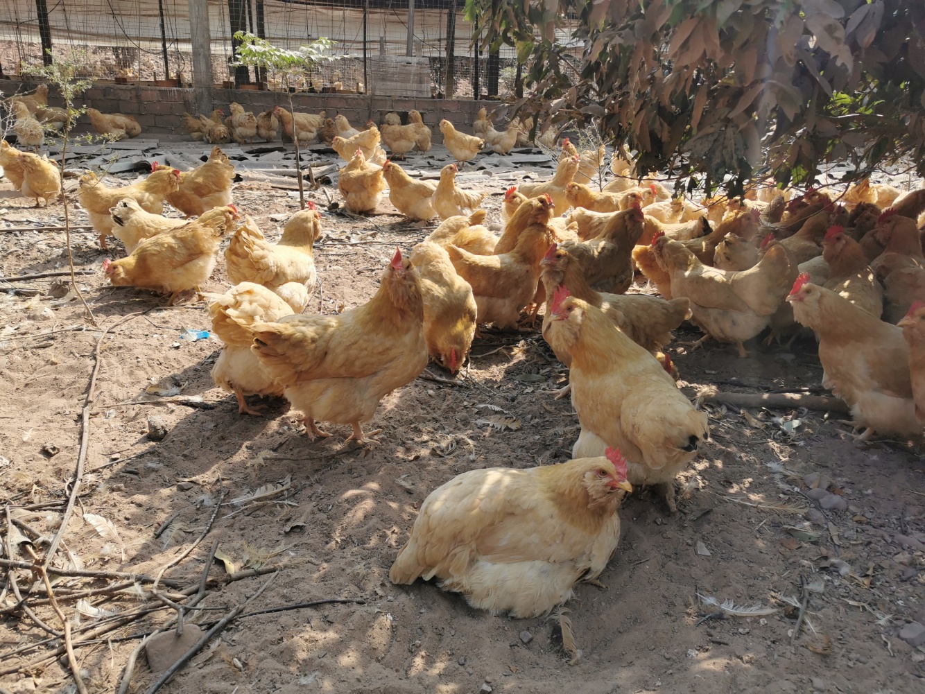 作为广东四大名鸡之一,三黄胡须鸡在石坝镇的养殖历史悠久,由于皮脆骨酥、肉质鲜滑深受消费者喜爱。和村里大多数鸡农一样,黄小红在2000年左右也是单打独斗地散养,每年大概饲养两三万只鸡。到了2004年,她开始跟着村里的企业养鸡,由企业提供技术、疫苗、销售等各方面的支持,才逐渐扩大了养鸡规模,目前已经达到了十万只。她感叹道:“以前自己找销路,愁卖。现在养大后由公司统一收购,心里安定多了。”