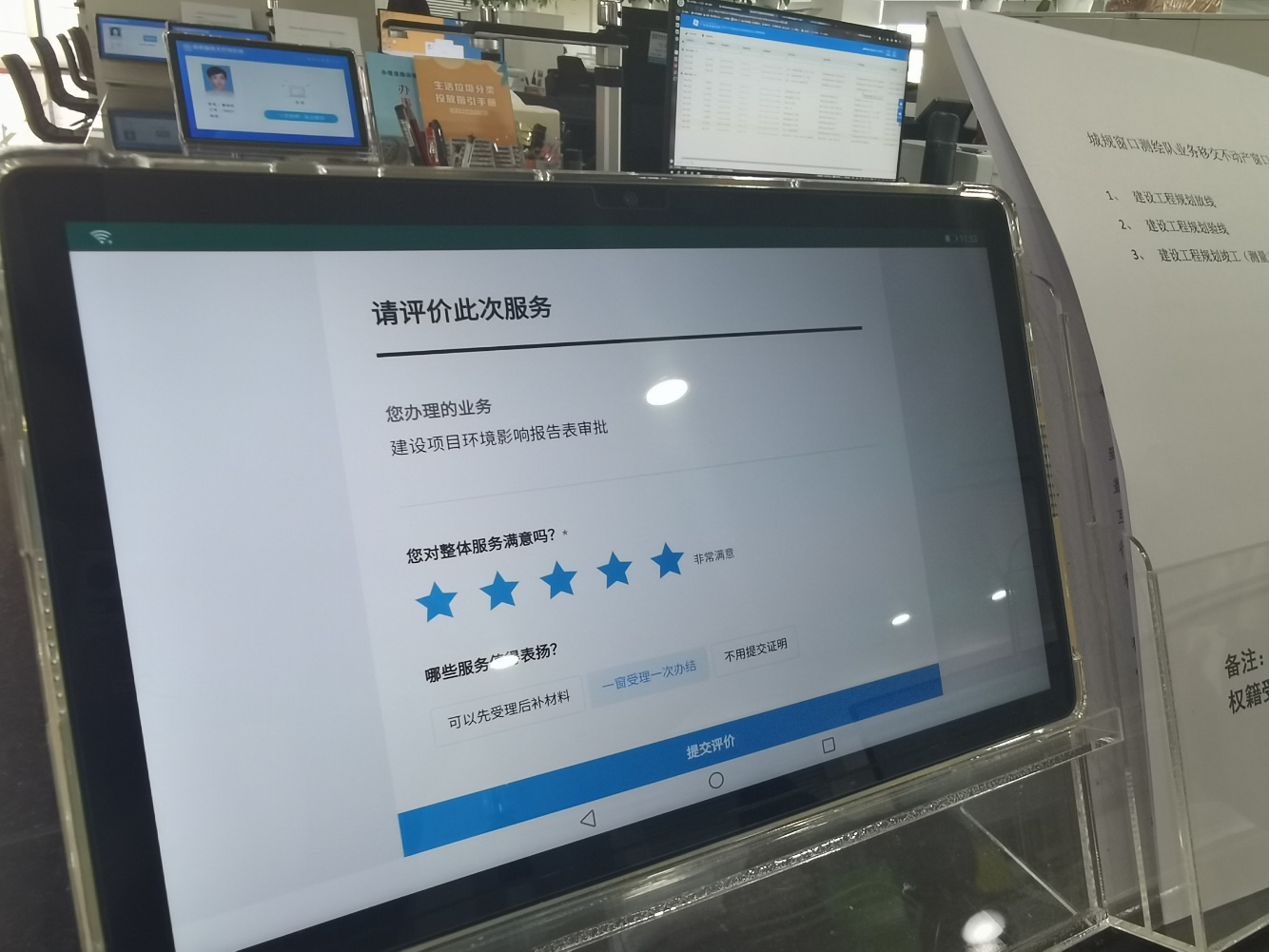 值得一提的是,为全面及时准确了解企业和群众对政务服务的感受和诉求,有针对性地改进政务服务,博罗现已建立了政务服务“好差评”制度。记者在县社会服务中心办事大厅看到,在服务窗口的醒目位置都设置了评价器,办事群众和企业只需要动动手指,就可即时对业务人员作出五星标准的服务评价,针对评价的结果,有关部门会进行跟踪回访,这有利于倒逼部门“一次办好”,形成评价、反馈、整改、监督全流程衔接,促进政务服务质量持续提升。