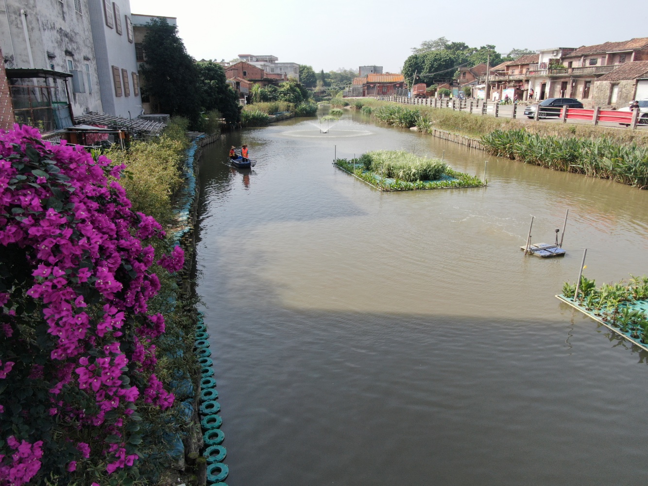 在沙河的下游,石湾镇中心排渠也发生了质的变化。走近里波水排闸段,可以看到河面的绿色水生植物郁郁葱葱,曝气装置如喷泉一般,仿佛置身公园。为实现“水清岸绿”的整治目标,石湾镇通过“拆、截、清、修、引、绿”六字秘诀,逐步恢复流域生态及自净能力。改段整治企业负责人肖淮告诉记者:“2018年12月份开始启动该项目,经过半年的治理,全面消除了黑臭现象,水质明显提升。治理后一年,水质稳定达到地表水5类的标准。”