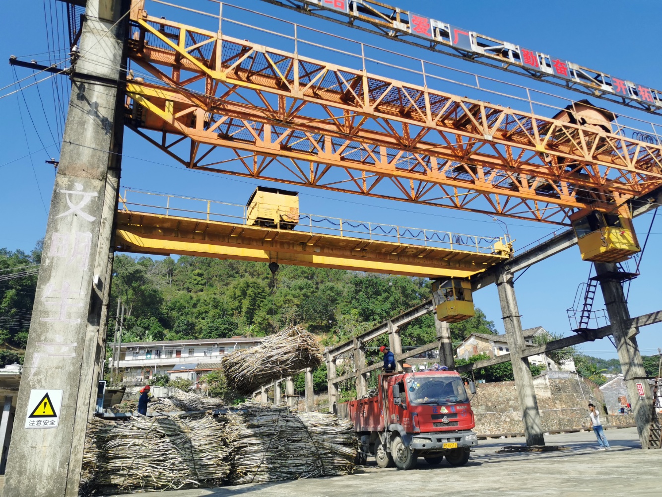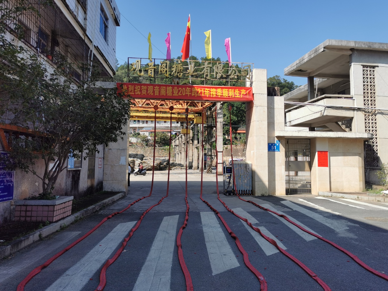 当天中午十二时许,伴随着机器的隆隆声,一捆捆甘蔗被运送轨道慢慢传送至机器中,工厂内一派繁忙景象,观音阁糖厂又迎来了新一轮的甜蜜生活,四周弥漫着的浓浓蔗香让这个老糖厂更加焕发出勃勃生机。