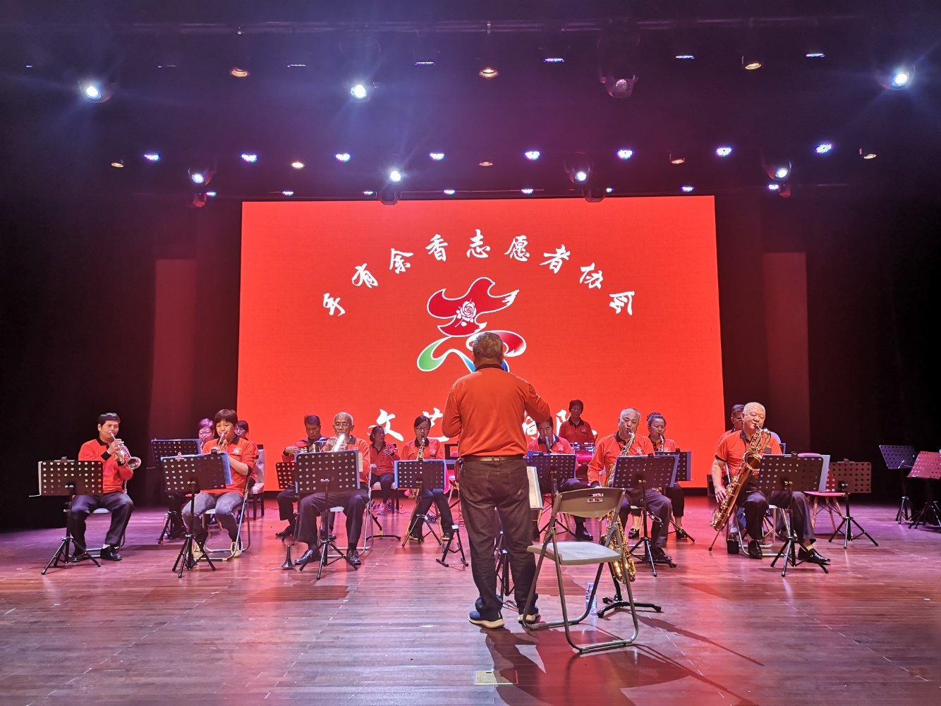 近日,在博罗县手有余香志愿者协会文艺轻骑队的排练场地——小马剧场的舞台上,队员们正专心致志地进行合奏练习,《我和我的祖国》等经典曲目的音乐声响彻剧场。由于乐队队员们平均年龄64岁,乐器演奏对他们来说,是个不小的挑战,但这丝毫没有影响他们对音乐的热爱。