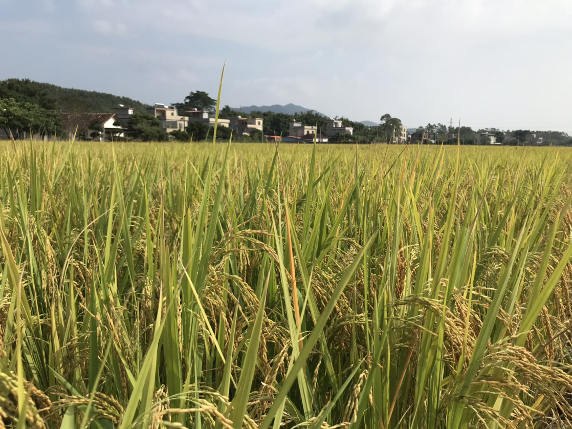 秋风亲吻稻田,泛起了一片金色波浪。这片位于杨村镇埔连村的稻田约180亩,收割机正在田间来回穿梭,稻谷通过管道输送到装载车上,随后送往加工厂,这里出产的大米将销往深圳等地。