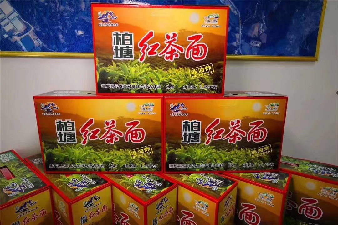 如今,该合作社成功研制了绿茶粉、红茶粉、艾粉、桑叶粉等产品配方,并采用代加工的模式,生产出了红茶面、绿茶面和抹茶蛋卷等衍生产品,深受消费者喜爱,得到了当地人“左牙嚼右牙香”的称赞。