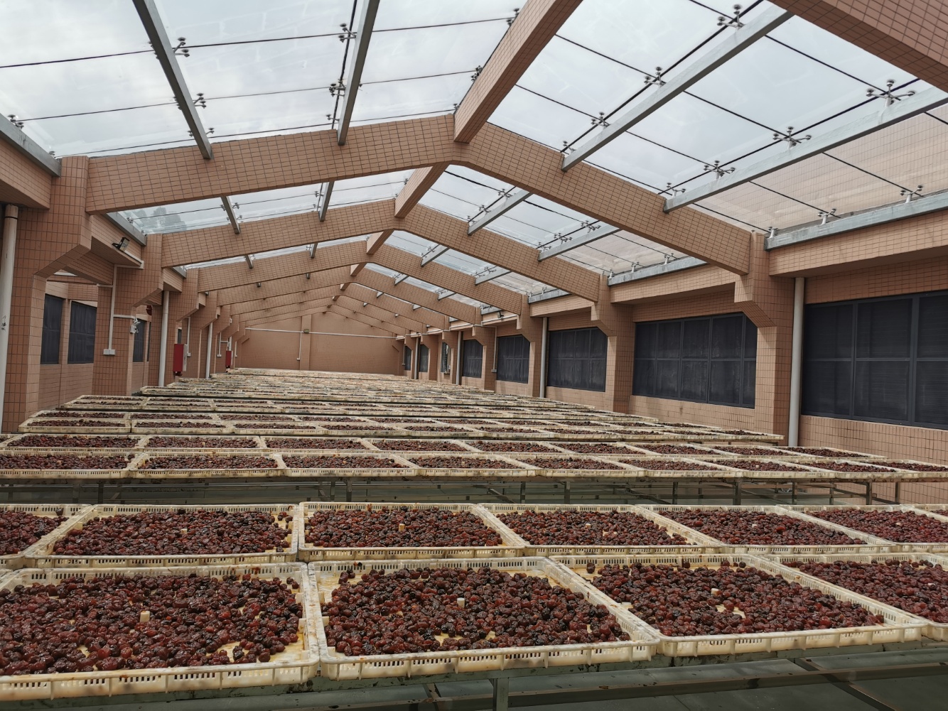 如今,二十多年过去了,光华凉果厂的规模也不断扩大,今年还正式搬进了新建的生产车间。与此同时,李桥华也逐步把博罗凉果的生产工艺和生意交到儿子李晓聪手里,26岁的李晓聪成为了第六代传承人。李晓聪告诉记者:“今年新建了一栋厂房,总面积达到是7000平方米。采用全封闭玻璃晒场,防止蚊虫、鸟类影响到果源。老厂逐渐转为仓库储存,而生产、投料、包装都在新厂进行,全部都是洁净的材质,产品的质量得到了进一步保证。”