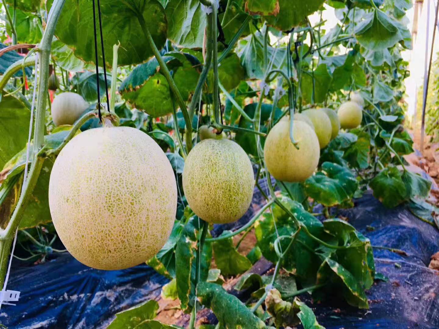 近日,记者来到位于湖镇镇坪山村的网纹瓜种植基地里看到,大棚内瓜香四溢,网纹瓜体形硕大、网纹明显。
