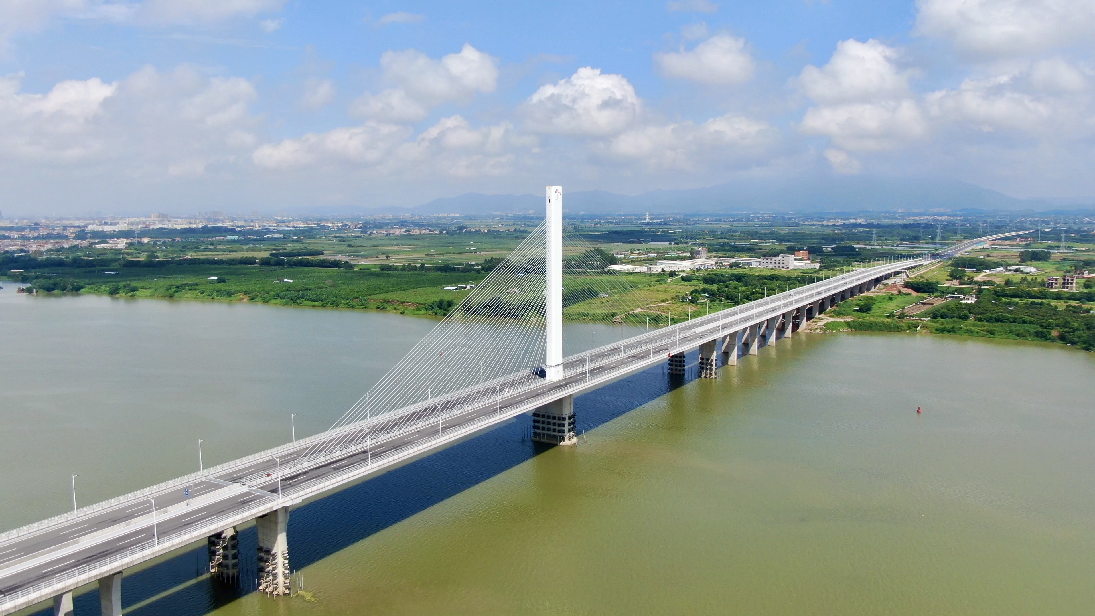 据了解,双龙大道全长约10.2公里,起点位于博罗县长宁镇青塘村,由北向南途径长宁、龙华、龙溪、园洲四个镇,通往东莞企石,全程双向六车道。沿途经过广惠高速跨线桥、沙河大桥、k9+168龙溪特大桥共3座桥梁和大片农田水域,自然景观秀丽。上午十点十分,记者就来到了双龙大道与东莞东平东江大桥交汇处:“也就是说,我们这次体验一共耗时十分钟左右。相较之前长宁到企石车程大概减少了30分钟。俗话说,路通财通,相信双龙大道的全线开通,对进一步促进沿线地区的经济往来具有重要意义。”