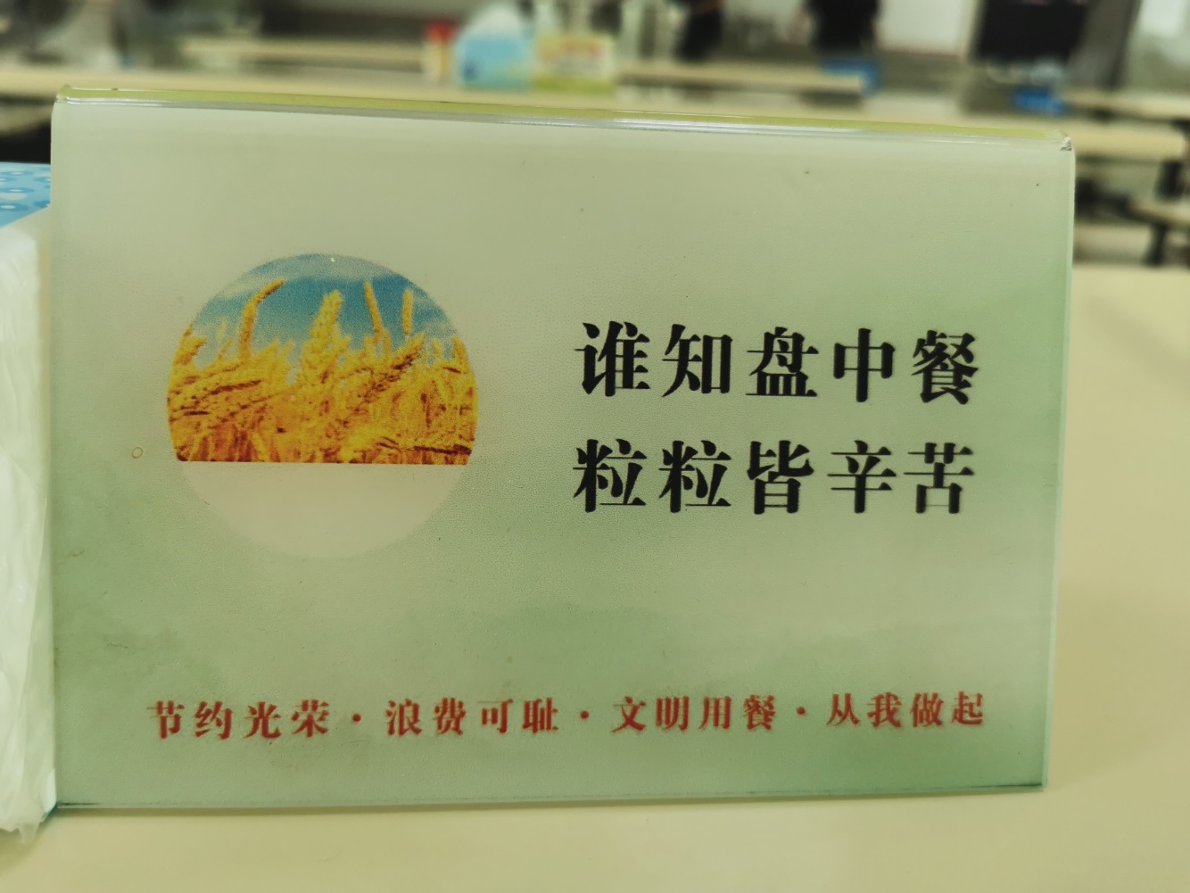 工作人员李永昌说:“除了在食堂吃饭要节约,出去外面吃也尽量不要铺张浪费,少点几个菜,吃不完的打包带走。”