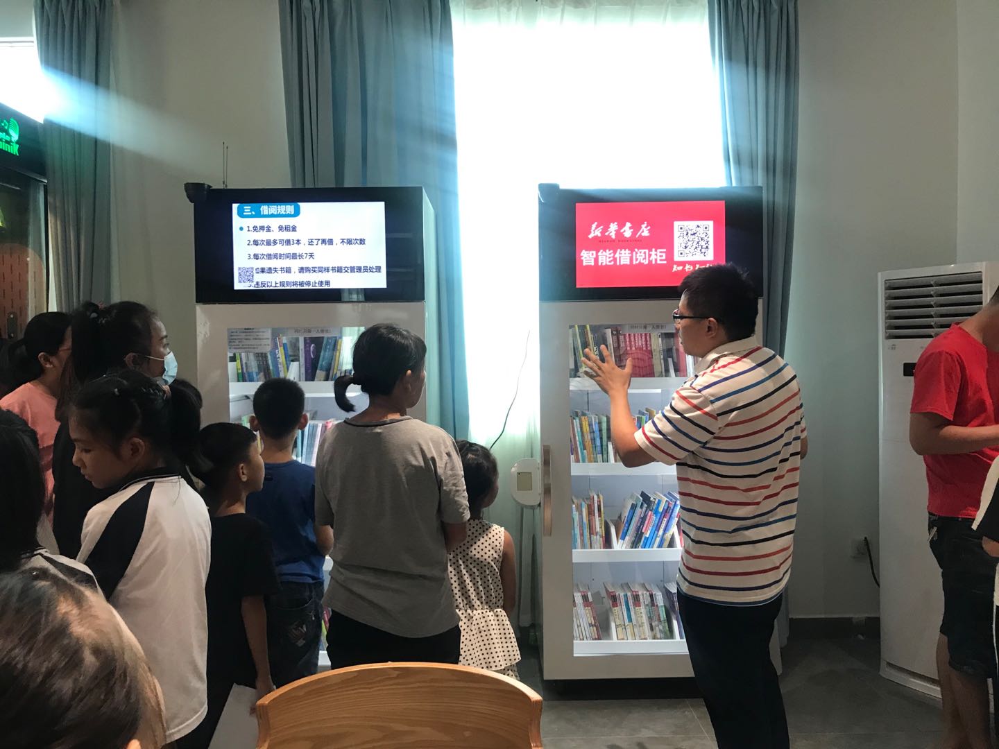 “快快快,快拿手机扫码,我想看那本书。”一名学生站在智能共享书柜前催促其母亲用手机扫码借书。这一幕发生在博罗县长宁镇新江村的新时代文明实践站内。