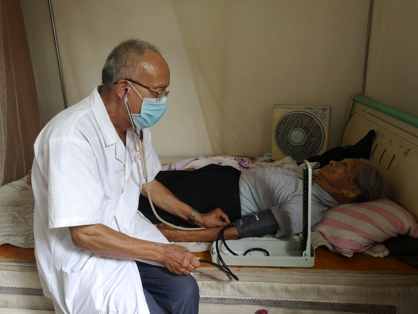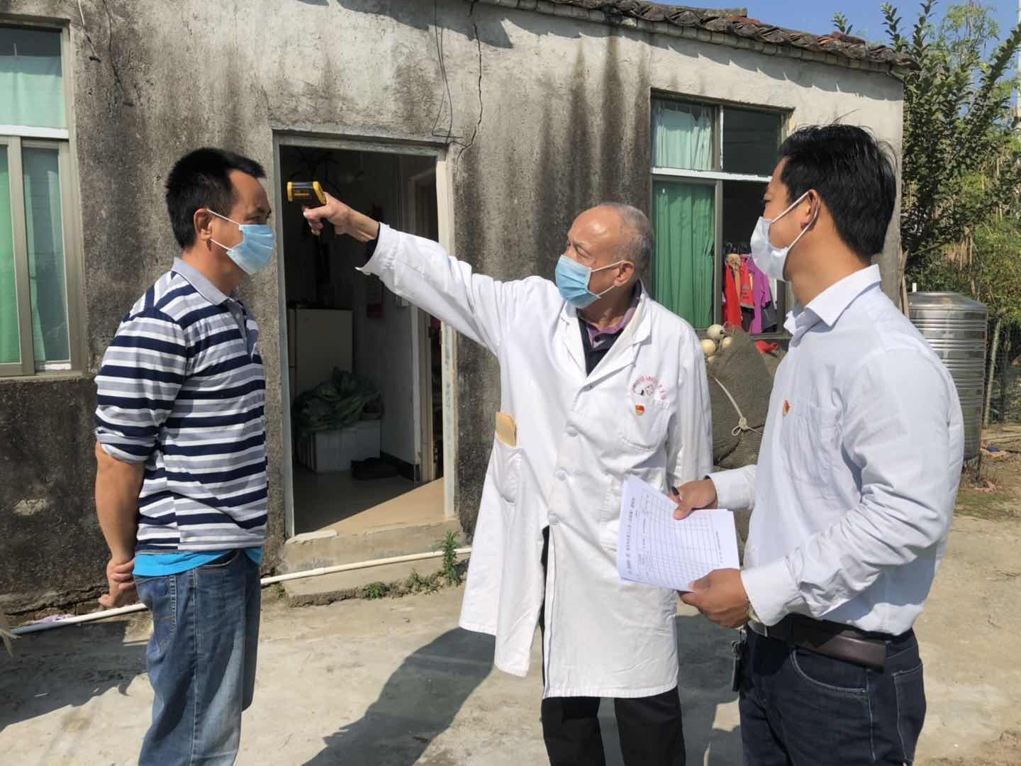 和睦村共有14个村民小组,有村民近3000人,较为分散,且有不少的外来务工人员租住。今年春节期间新冠肺炎疫情突如其来,防疫任务重。作为村里唯一的村医,也曾经历过几次大范围的传染疾病,温森古深知越是这个时候,村里越需要他。为此,温森古积极加入防疫“三人小组”,每天跟着村委副书记邱桥顺在各家各户之间来回奔波、给村民测量体温等。高强度的排查防疫任务,让年轻的邱桥顺有时也感到劳累。然而,身边这个从小看着自己长大的七旬老人却从没打过退堂鼓。
