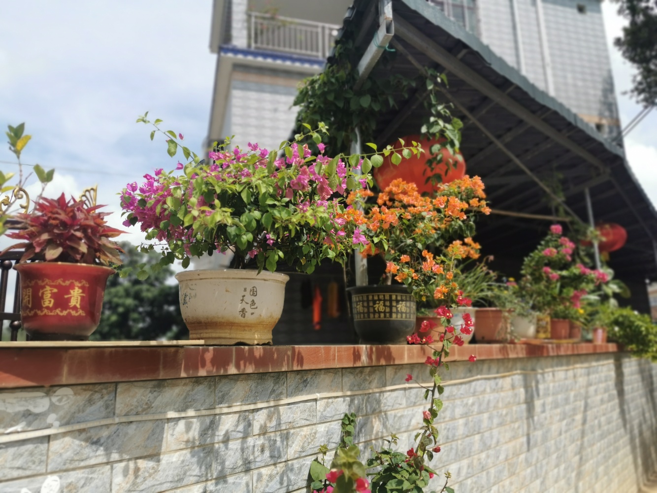 走进新围小组,记者偶遇村民英姐,应邀来到她家,仿佛走进了一片花的海洋,多彩绚烂的樱花、娇艳欲滴的三角梅等开满了庭院、墙头,让人叹为观止。英姐是个外来媳妇,20多年前从云南普洱嫁到观音阁,那时这里的路是泥巴路,很多房子还是泥砖房。“这几年村里发生了根本性的变化,村庄整洁了,环境变美了,路灯走到哪里都是亮的,农村和城市住着差别不大了。”这让她养花伺草的兴致更高了,除了外出干农活,她把大部分时间用来伺养花草、收拾庭院,房前屋后看起来非常整洁舒服。