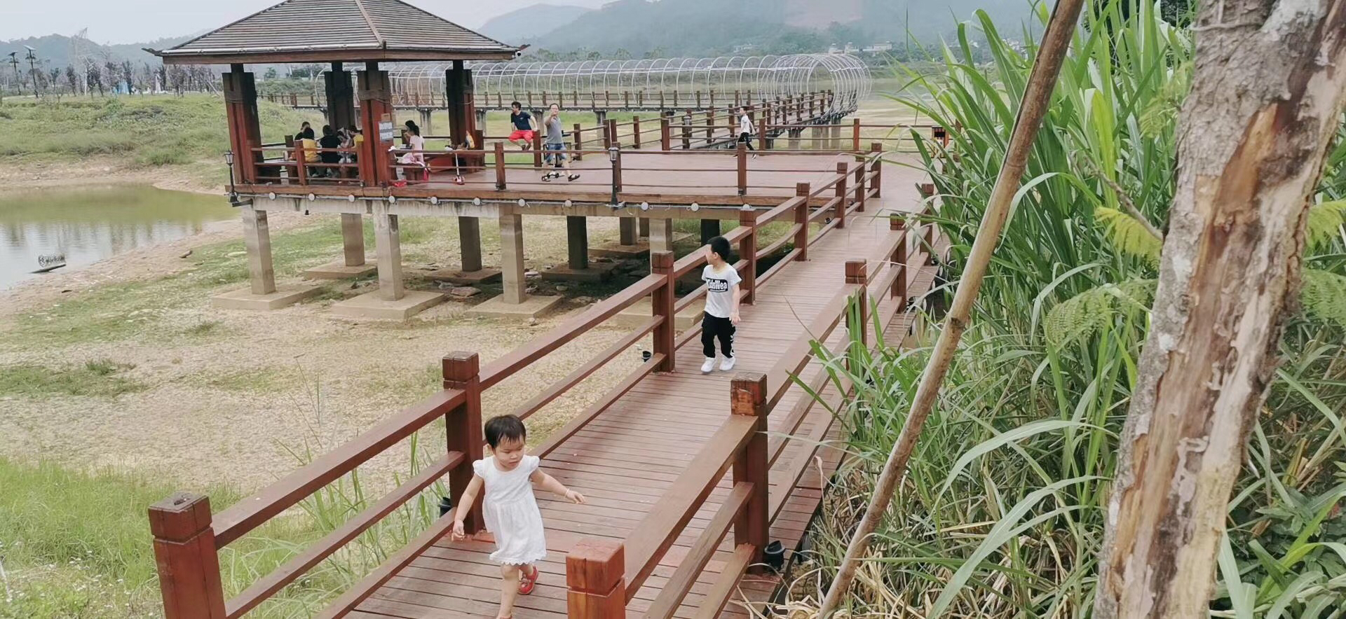 在村内,游客有的在池塘边体验垂钓,有的在玩陶艺,有的在欣赏户外美景拍照,水库边、观光栈道,三三两两的人群在惬意地游玩。
