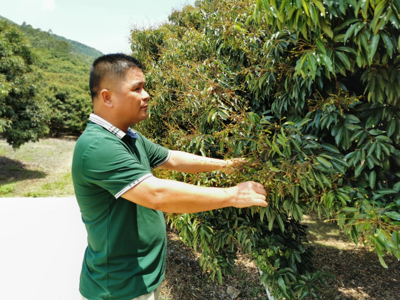 在公庄镇冷水坑荔枝园里,博罗县辉煌水果种植专业合作社负责人高文辉正在察看荔枝挂果情况,一串串火柴头大小的果子密密麻麻爬满枝头,看这长势,今年荔枝丰产是肯定的了。