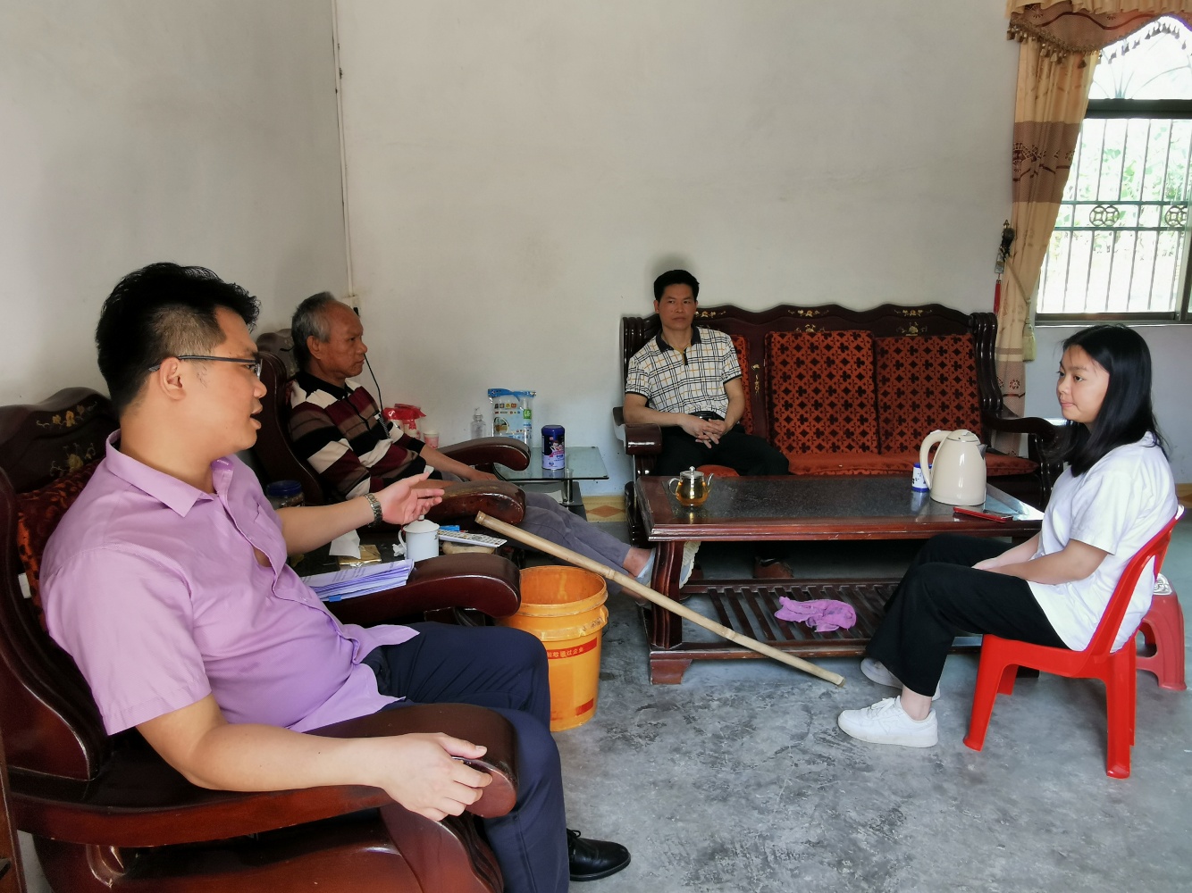 今年58岁的骆国辉是村里的贫困户之一,家里有四口人,妻子和一对子女都有不同程度的智力问题。一直以来,尽管他勤勤恳恳工作务农,家里的经济状况却并不理想。2016年,惠州工程职业学院老师马南奎来到村里担任第一书记,了解到骆国辉有种茶炒茶的技术后,特地帮他购置了一台炒茶设备,炒茶效率得到大大提高。