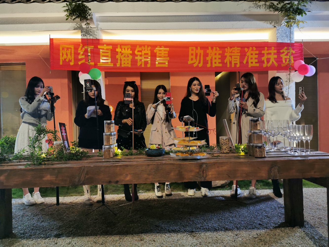 1月7日晚上,观音阁镇民宿“山里院子”举办了一场网红直播+精准扶贫活动,由全国56名网红同时在抖音、快手、淘宝等热门平台实时直播销售观音阁黑糖,其中7名网红更直接来到“山里院子”现场直播带货。