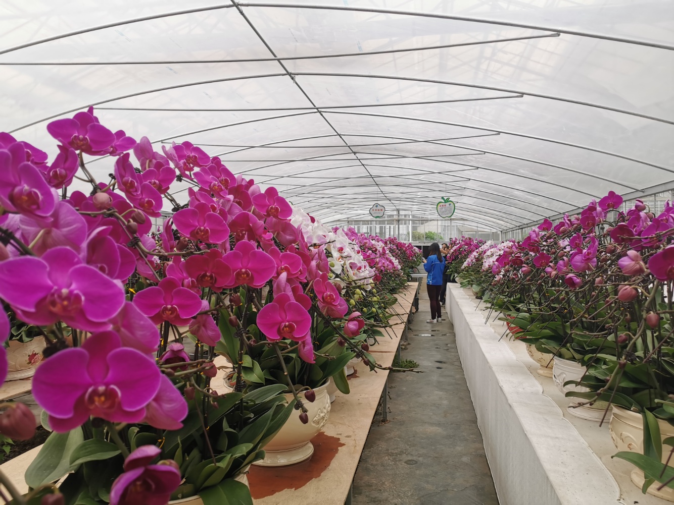 临近元旦,园区还将推出质量优等、花期长、花色艳丽的太空蝴蝶兰供游客前来参观打卡、拍照选购。据林城峰介绍,今年园区共培育蝴蝶兰1.5万株,较去年增加五千株,品种和颜色方面也比往年更加丰富,目前已经逐步上市,售价在每株40元左右,预计能带来60万的收入。