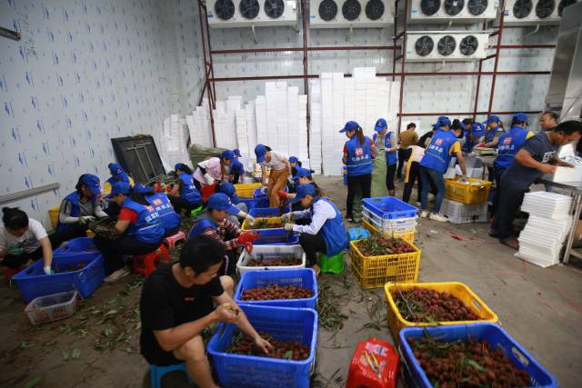 根子镇村民在荔枝季分拣、打包、冷链发货荔枝鲜果