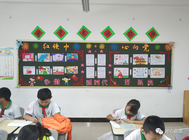 该校充分发挥宣传栏、宣传板报、宣传横幅等阵地的作用,利用好网格微信群、公众号,设置《党史知识天天读》专栏,及时更新推送相关党史学习知识、上级要求、学习动态,形成以党史学习教育为主的浓厚政治文化环境,确保全校上下时时受感染、处处受熏陶。将美行楼中厅打造为“学党史,读经典”专题展厅,设置12面展板,宣传百年党史知识、红色经典诗词,组织学生阅读学习。组织各班级开展“学党史,读经典”板报展评活动,在教室营造浓厚的红色文化氛围。“红领巾”广播站每天8:00至8:20广播党史知识,播放红色经典歌曲。