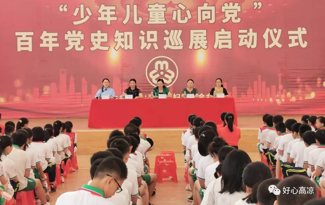 月月有主题,周周有活动,打造多重活动阵地,丰富活动形式,推进党史知识入心入脑。结合各个月份的节日,组织开展主题丰富的教育活动,三月主题为“读雷锋日记,争做小雷锋”,四月主题为“清明祭英烈,讲英雄故事”,五月主题为“学劳模事迹,做劳动达人”,六月主题为“学儿童楷模,做榜样学生”,七月主题为“寻英雄足迹,讲革命故事”。组织党员教师、少先队员代表参观高州革命历史博物馆,实地学习革命历史知识。组织探访、慰问老党员、退伍老兵张志强、梁任匡,聆听党史故事、革命故事。联合市妇联在校园举办“少年儿童心向党”百年党史知识巡展活动,组织全体师生学习。