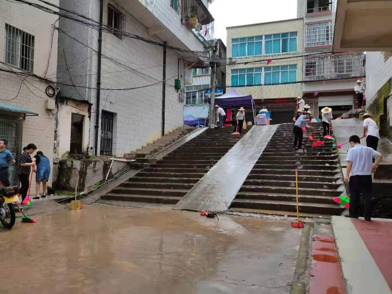 在出发后不久,便迎来了倾盆大雨,然而这无法动摇他们的决心。在大雨过后,队伍再次出发并分散于各个包联区域中,全面细致地开展大扫除工作。