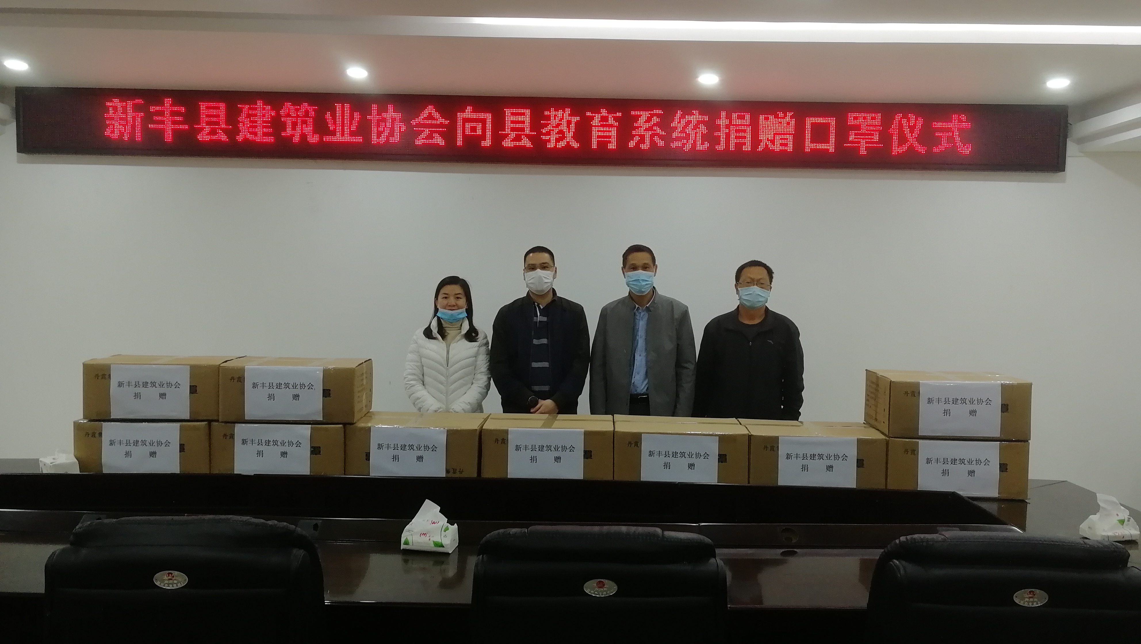 3月31日,新丰县建筑业协会捐赠10000个口罩。