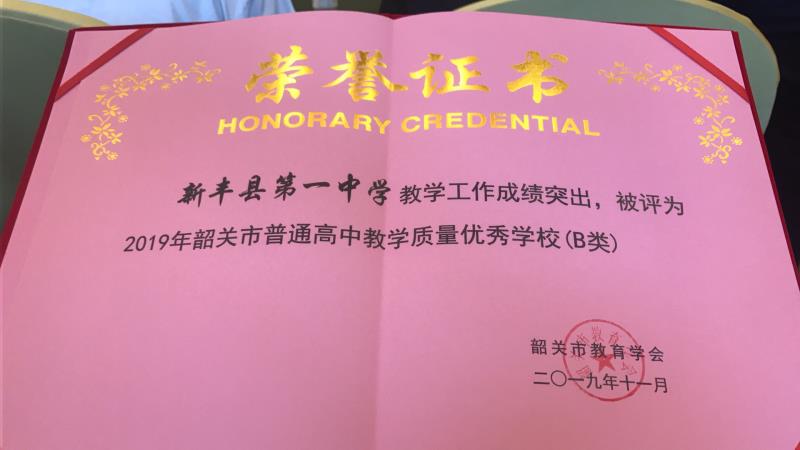 近日,韶关市教育局传来捷报,新丰一中今年高考三线均取得了较理想成绩,再次被评为韶关市普通高中教学质量优秀学校。这已经是2011年来,新丰一中第八年获得此项荣誉。