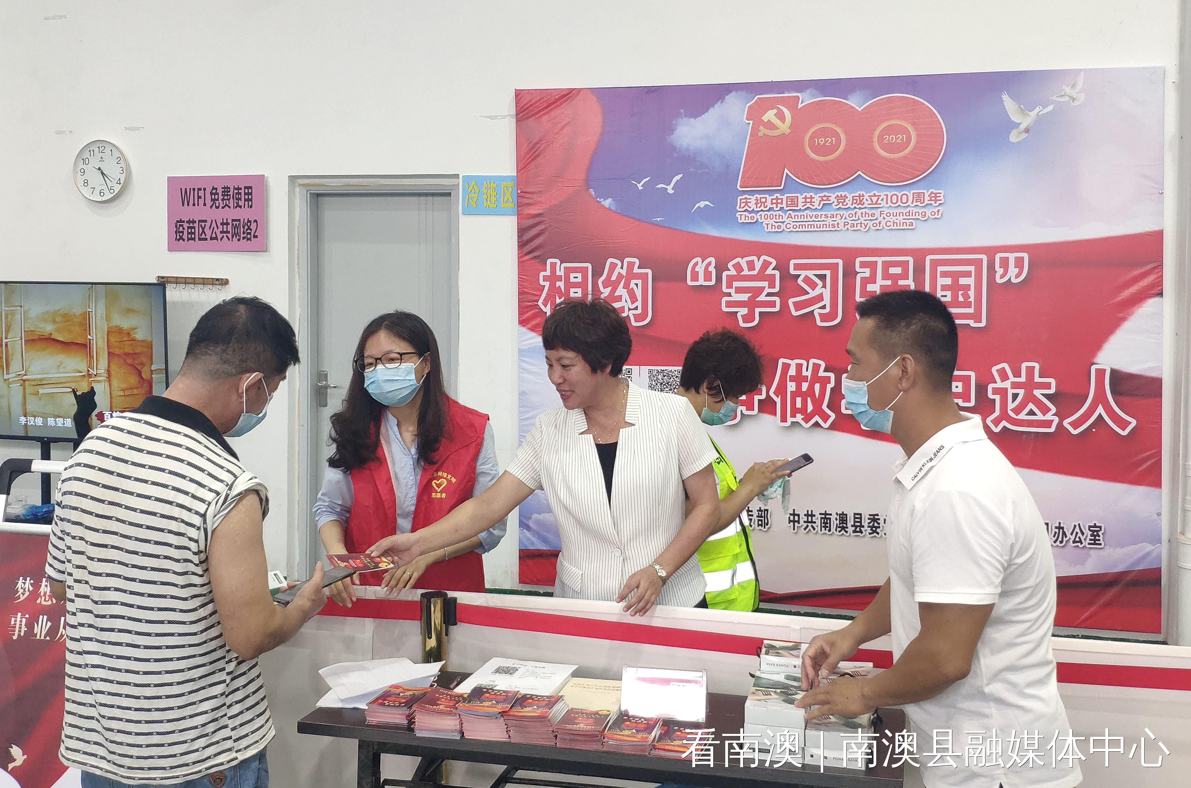 为进一步扩大“学习强国”用户群体,增加用户数量,5月18日下午,南澳县领导黄淑华带队在县全民健身广场疫苗临时接种点,开展“相约学习强国,争做学史达人” 、“学习强国”学习平台推广和党史学习教育知识宣传活动,发动全社会积极使用“学习强国”学习平台,扎实推动党史学习教育向纵深发展。