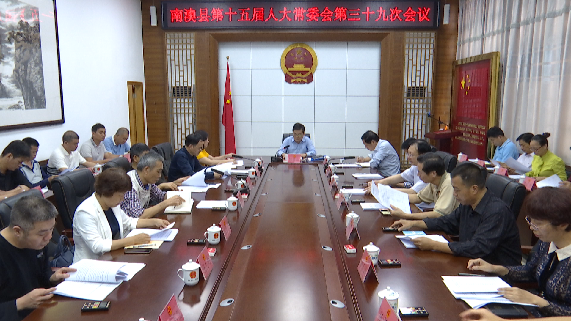 4月2日上午,南澳县第十五届人大常委会举行第三十九次会议,县人大常委会主任陈映山主持会议。县人大常委会领导林泽红、黄卫丹、蔡奕生、林永毅和常委会其他组成人员出席会议。县领导黄海生和县监察委、县法院、县检察院主要领导;县人大各专委主任委员、副主任委员,常委会办公室及各工委主任、副主任;县直有关单位;各镇人大主席;部分县人大代表列席会议。