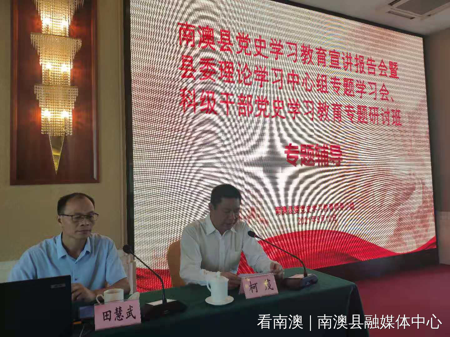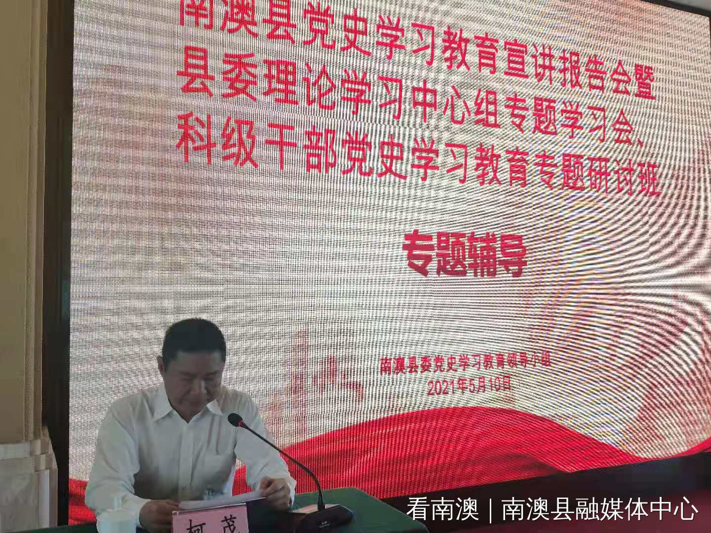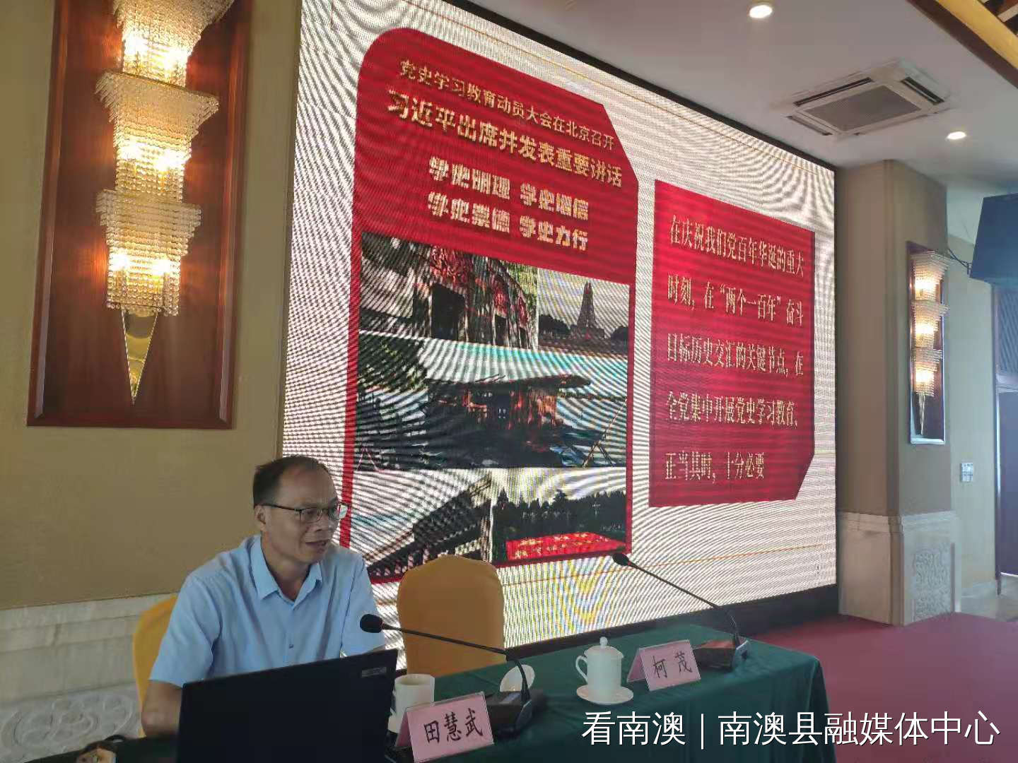 5月10日上午,南澳县委举办党史学习教育市委宣讲团宣讲报告会暨县委理论学习中心组专题学习会。县委书记柯茂主持报告会,汕头市委宣讲团成员、市委党校党史党建教研室主任田慧武应邀作宣讲报告。