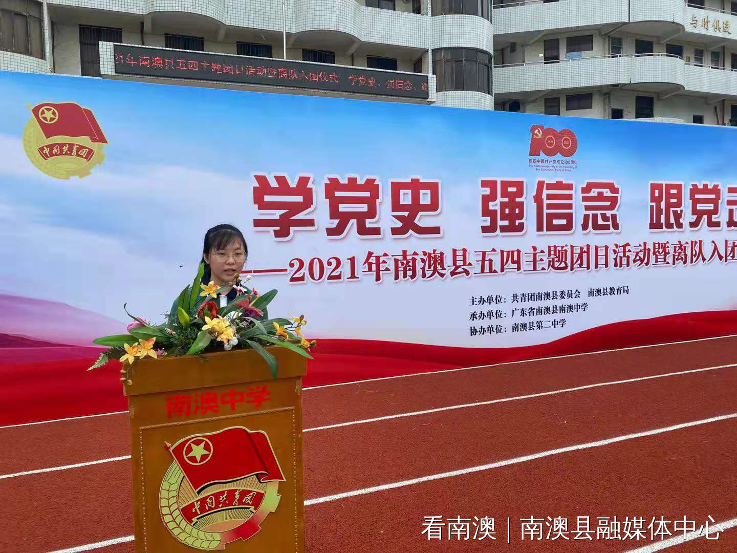 为庆祝中国共产党成立100周年暨纪念五四运动102周年,进一步深入开展党史学习教育,引导广大团员青年厚植爱党、 爱国、 爱社会主义的情感, 让红色基因、革命薪火代代传承。5月10日上午,由共青团南澳县委员会、南澳县教育局团工委主办的“学党史、强信念、跟党走”——南澳县“五四”主题团日活动暨离队入团仪式在南澳中学举行。