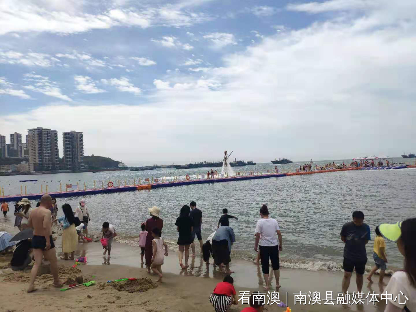 阳光、海浪、沙滩,是现代城市人们向往的旅游胜地。南澳县委县政府致力推进南澳岛全域旅游发展之路,将前江湾沙滩打造成为南澳岛最休闲、最网红、最热闹的阳光沙滩浴场。这两天来吸引了全国众多游客前来打卡和体验水上娱乐,成为南澳网红新打卡点。